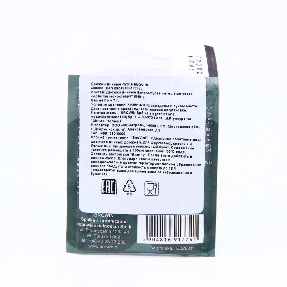Дрожжи винные ENOVINI WS 7г EAN: 5904816015355